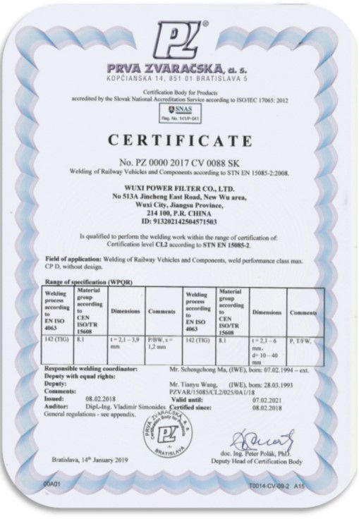全面貫徹實施ISO9001質(zhì)量管理體系和STNEN15085-2國際焊接體系認證,公司通過建立一系列的質(zhì)量目標,構(gòu)成目標體系,并根據(jù)實際情況的變化,改進質(zhì)量目標要求值,在《質(zhì)量手冊》的指導下,制定一系列控制程序。